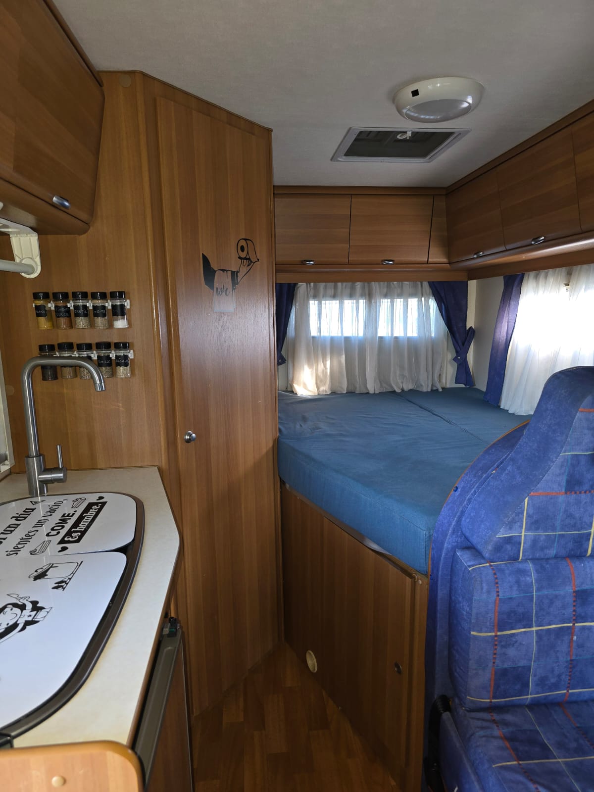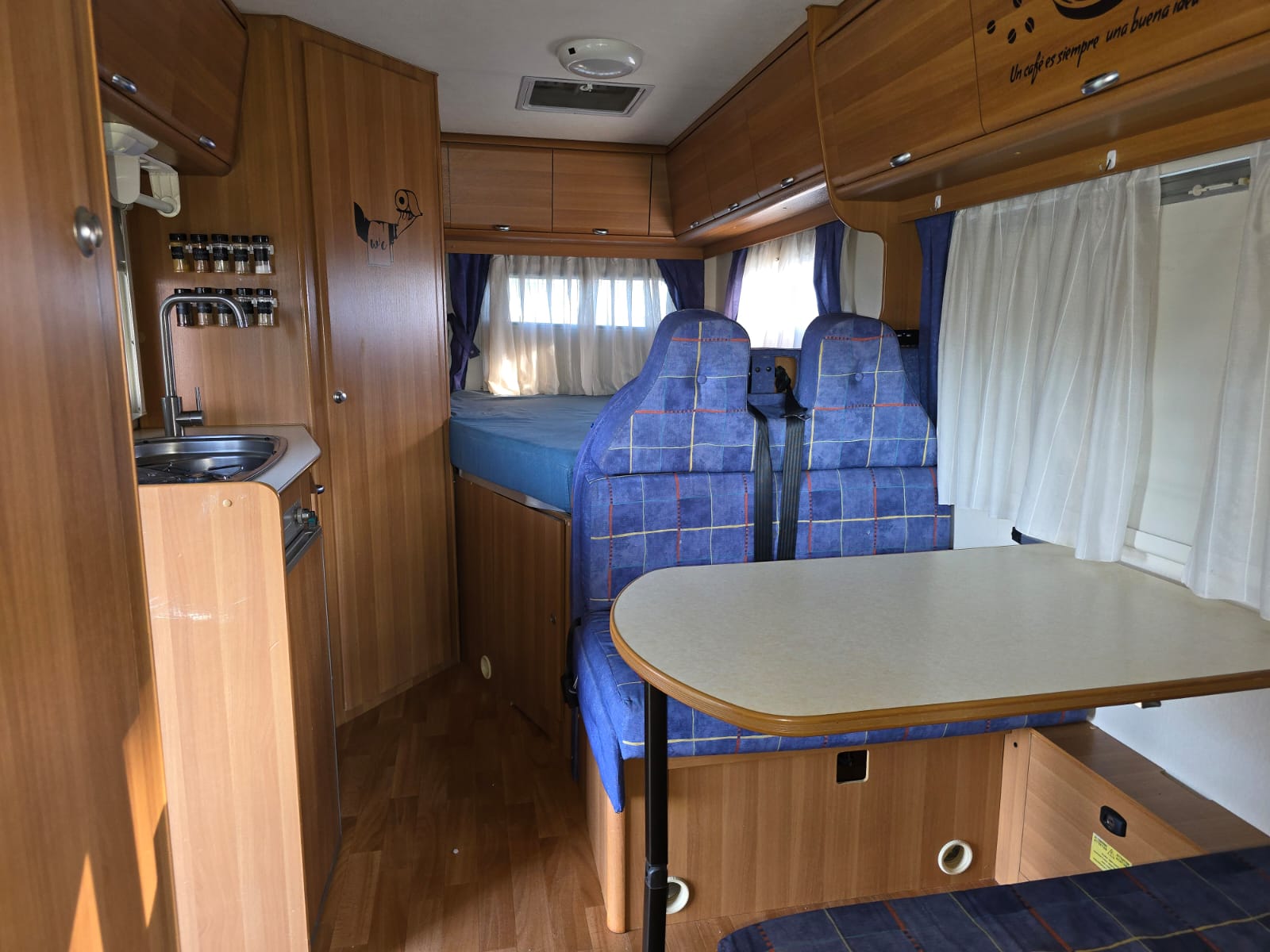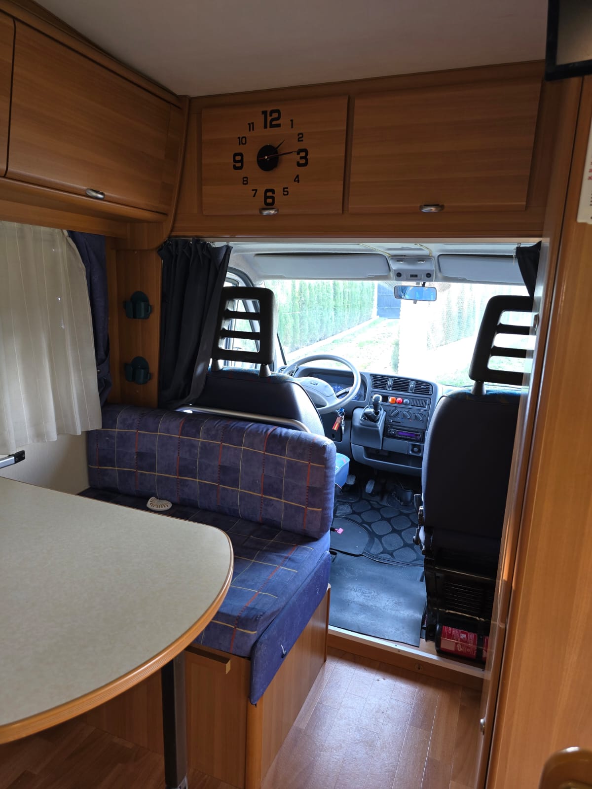 AUTOARAVANA PERFILADA, AÑO 2002, 178.000 KM FIAT DUCATO 1,9 TD, 110 CV, INVERSOR 1500 W, DUCHA SEPARADA, TV 22″, ESCALÓN ELÉCTRICO, FRIGORIFICO TRIVALENTE, HORNILLA 3 FUEGOS, BOILER TRUMATIC, TURBO VENT, PLACA SOLAR 140 W, ANTENA TV, TOLDO FIAMMA, PORTABICICLETAS, DOBLE BOMBONA DE BUTANO, 6 PLAZAS PARA VIAJAR, 4 PARA DORMIR