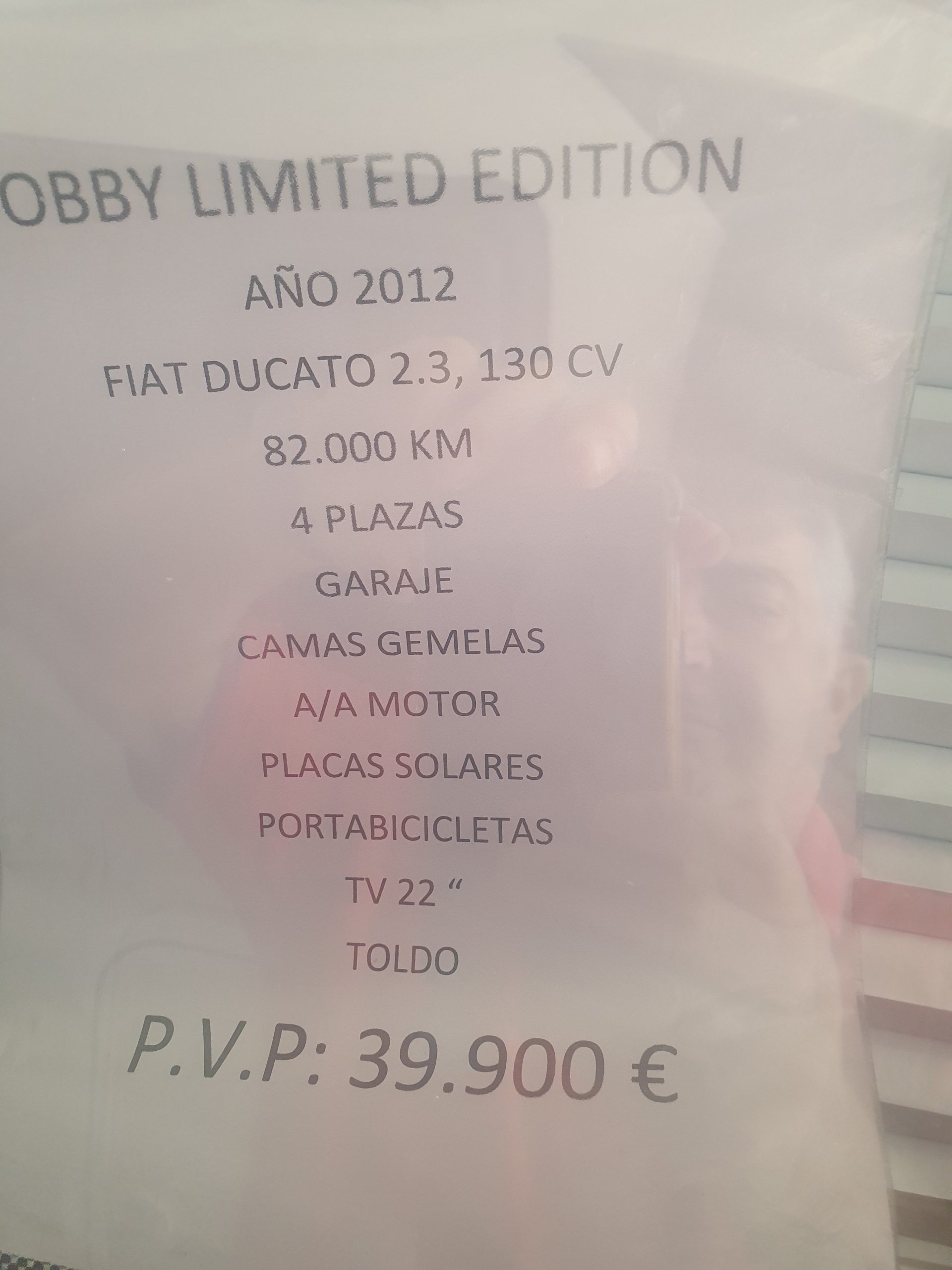 HOBBY LIMITED EDITION, AÑO 2012, FIAT DUCATO 2.3 TD 130 CV, 82.000 KM, 4 PLAZAS, GARAJE, CAMAS GEMELAS, A/A MOTOR,PLACAS SOLARES, PORTABICICLETAS,TV 222, TOLDO.